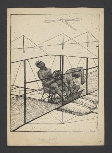 - чертежи парашюта Фауста Вранчича XVI века до моделей махолетов («аэродромов»), описанных в романе. Рядом с ними соседствуют настоящие униформы пилотов и технические достижения авиации.